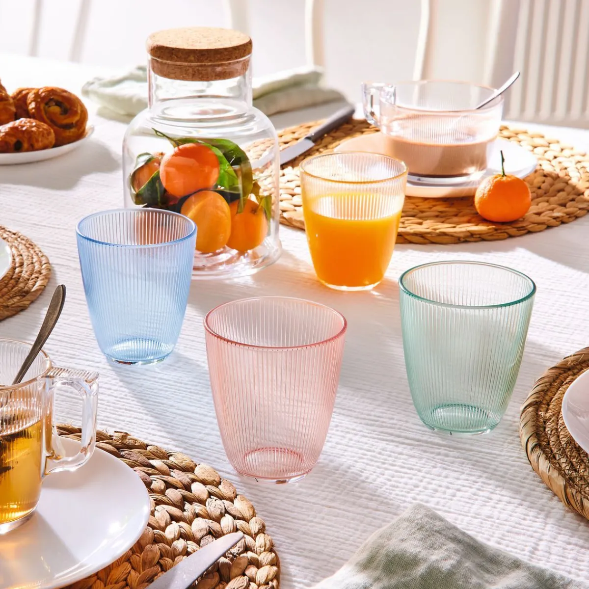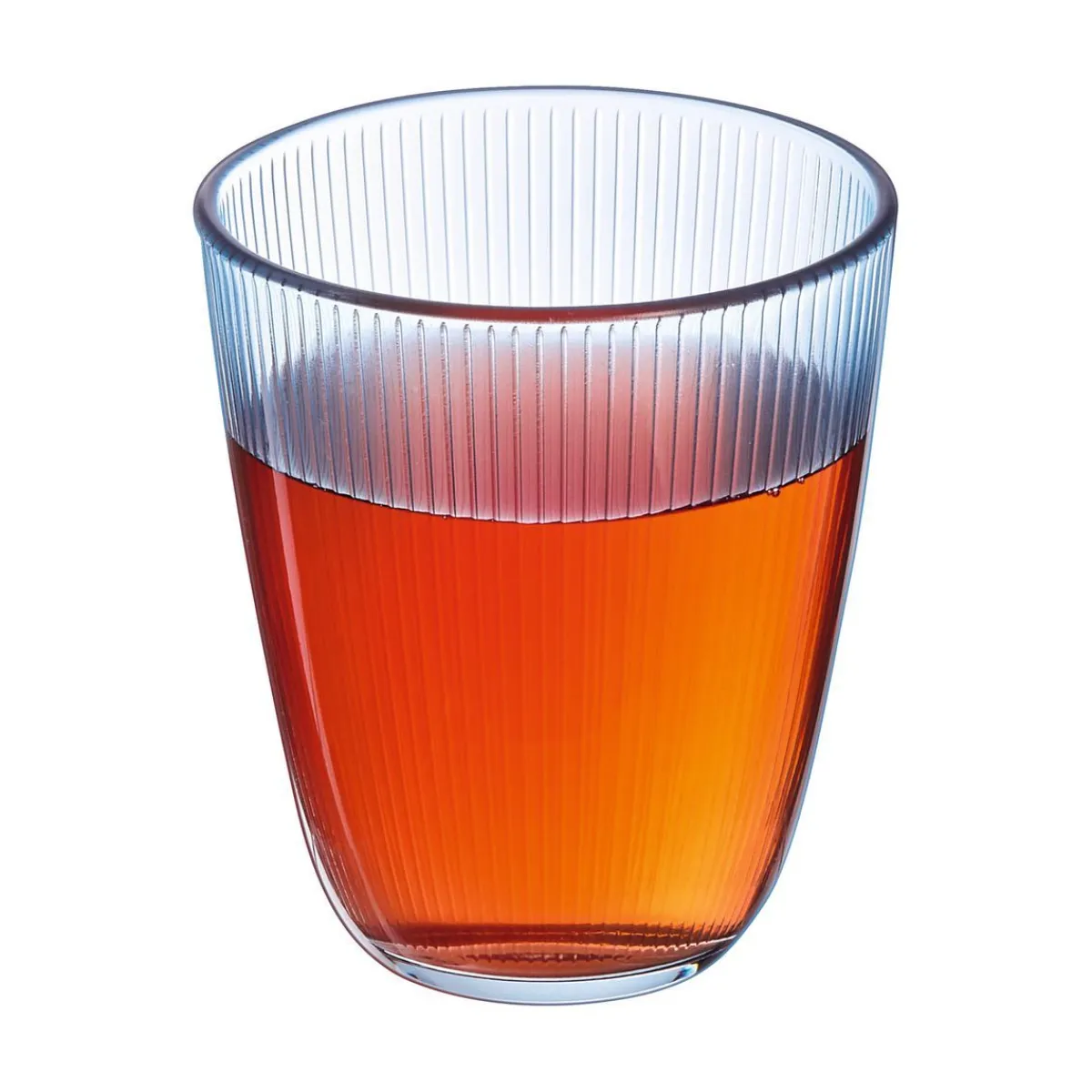 Opt for the blue glass 31 cl Stripy, by LuminarcThis glass is a 100% recyclable glass product, odorless.